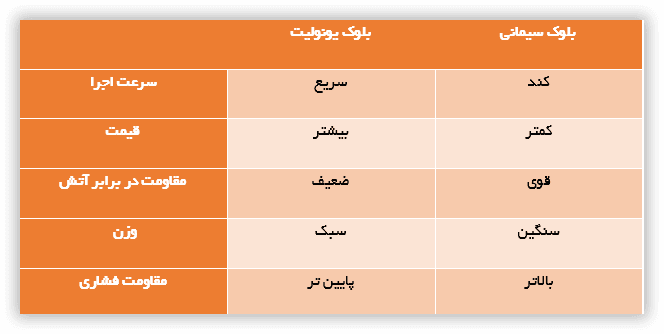 تفاوت بلوک سیمانی و یونولیت